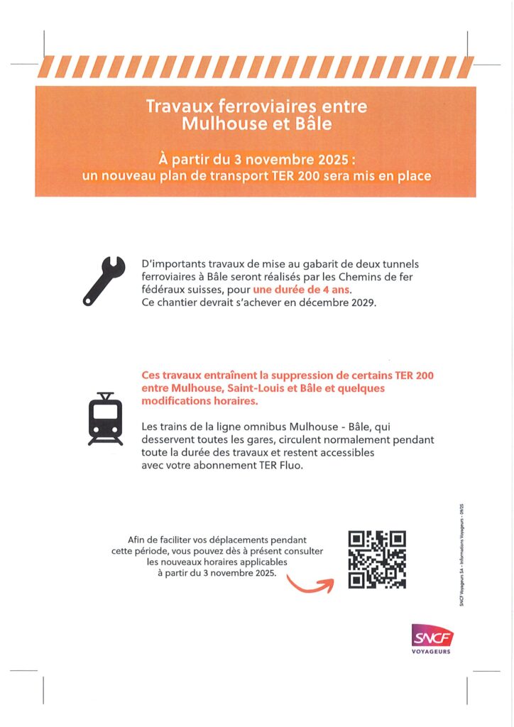 Information sur les travaux ferroviaires entre Mulhouse et Bâle⚠️