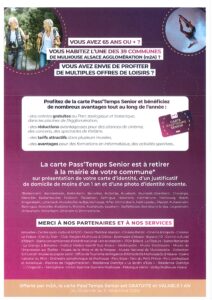 Retirez votre Carte Pass’Temps Senior offerte par m2A, dans la mairie de votre commune.
